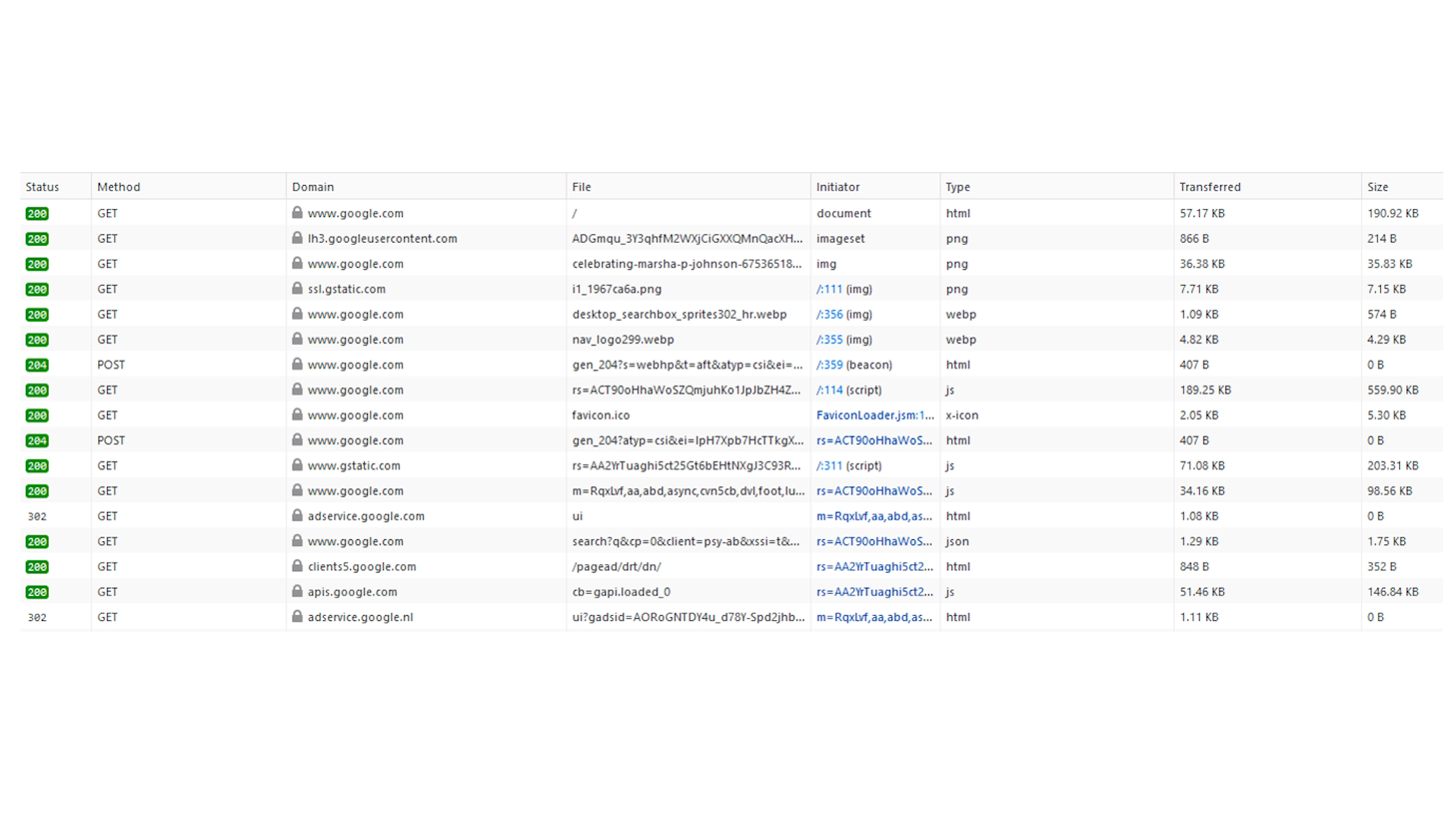 This screen shot of Firefox’s developer tools shows the number of ASP requests done to load just www.Google.com.