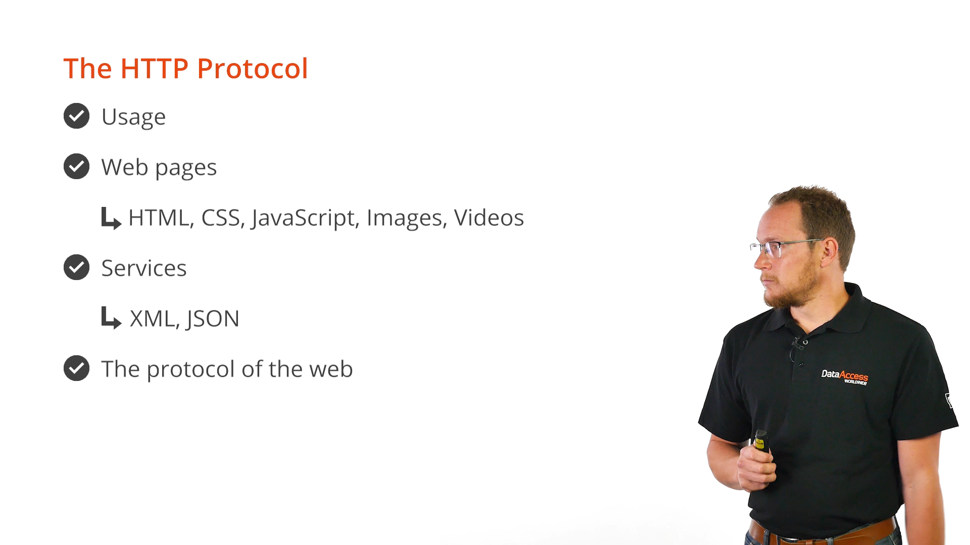 HTTP responses first include the protocol version, and then a status code. The status code indicates to the client if the handling of the request went well or if something is wrong. There is also a status message, which is a textual description of that status. A set of headers are also returned. The body follows the headers and can basically be anything. A commonly used header is the content-type header that usually indicates the type of content that is sent back.