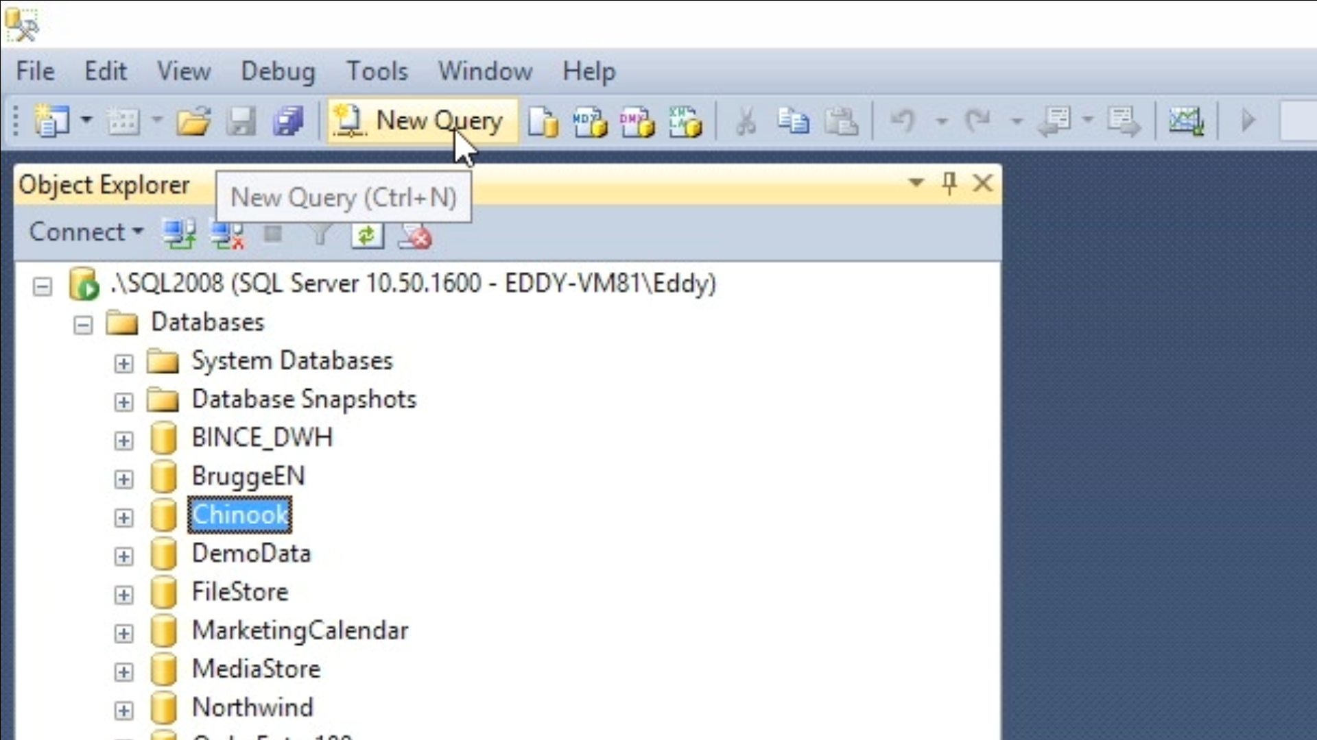 Highlight the database you will be working with. Again, “Chinook” will be used for this example.