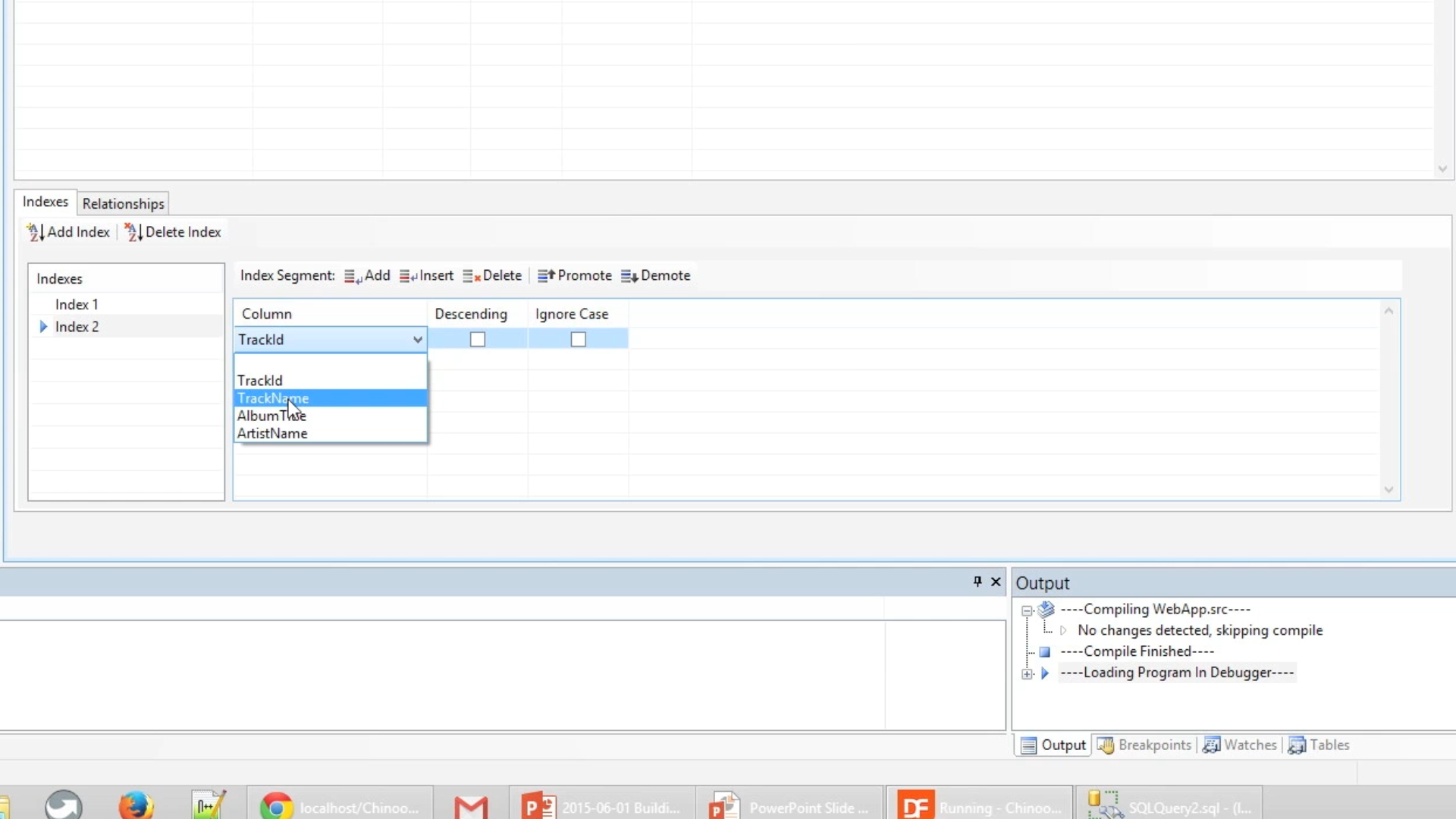 This step is repeated twice more creating indexes for ‘AlbumTitle’ >> ‘TrackName’ >> ‘TrackID’ and ‘ArtistName’ >> ‘TrackID’ ultimately resulting in four indexes.