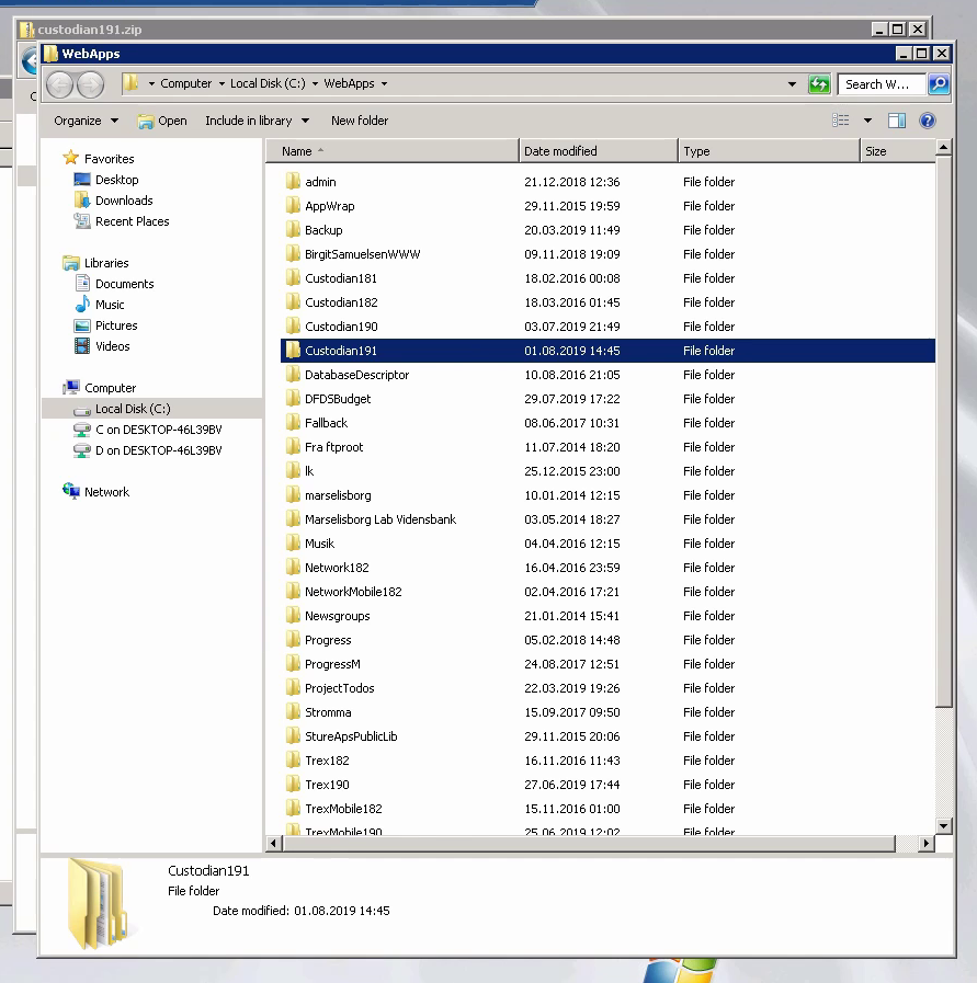Custodian 19.1 is a DataFlex application that provides an interface for updating other web apps running on the same server.