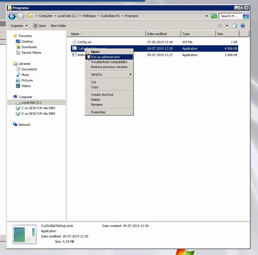Demonstration: intalling Custodian