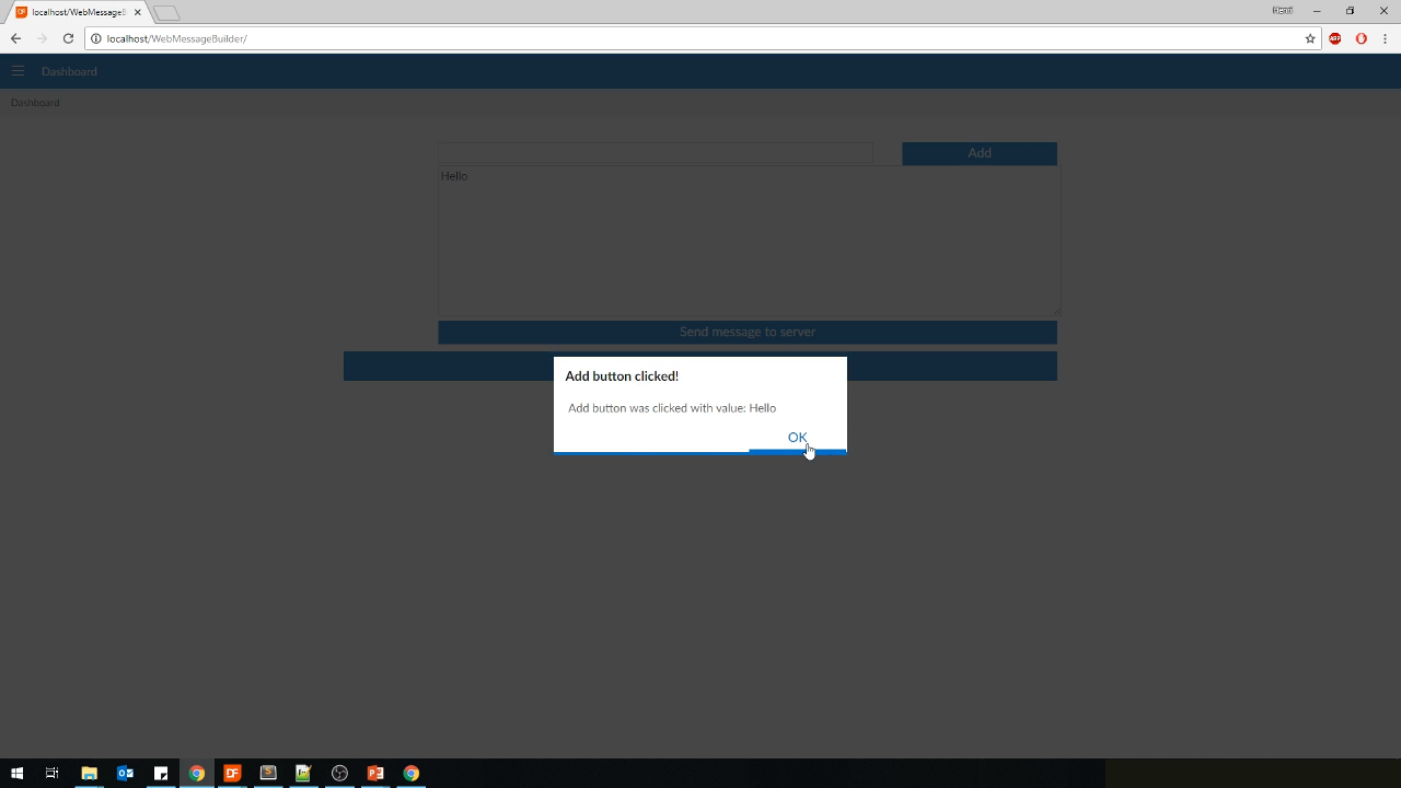 Send ShowInfoBox (“Add button was clicked with value: “ + sVal)