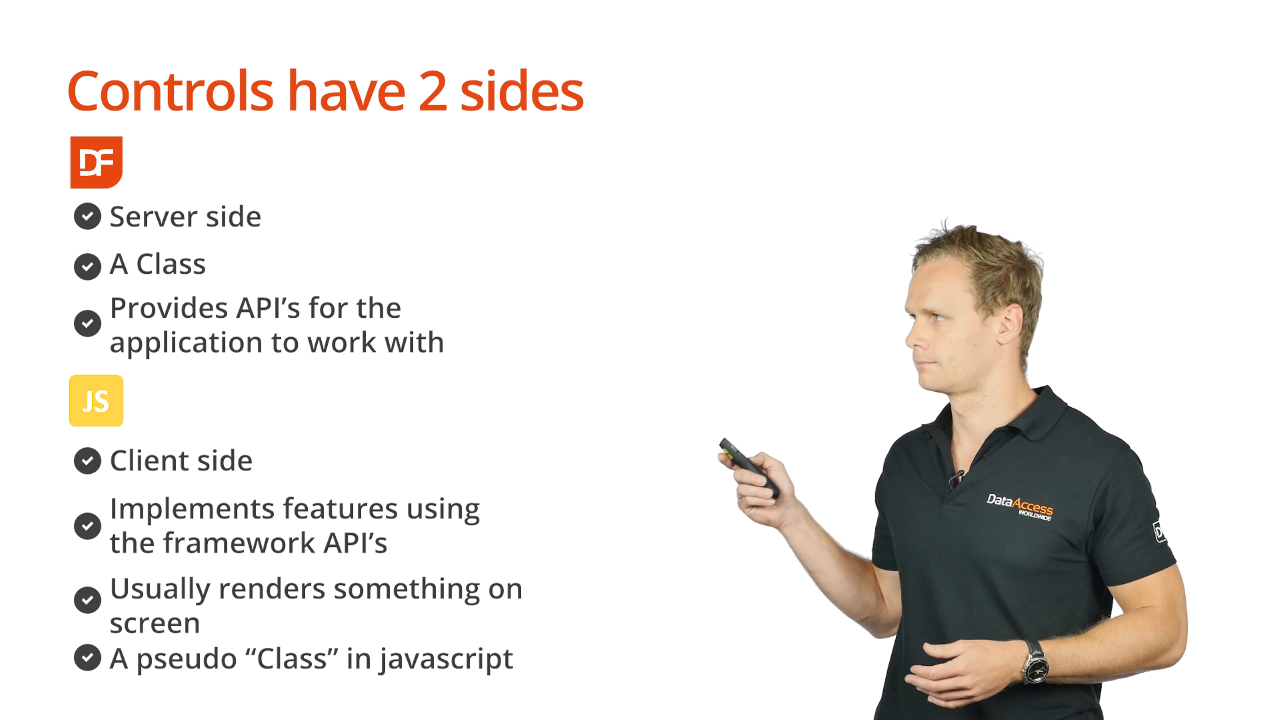 - DataFlex: The server side of the control that is a DataFlex class that provides the API’s that the application will work with.