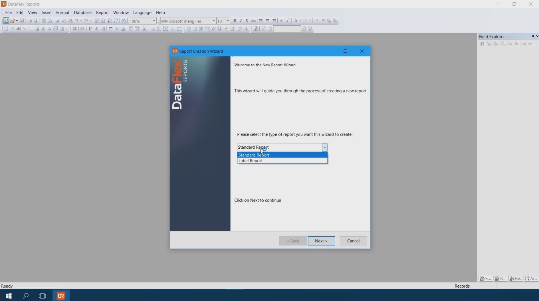 The easiest way to create a DataFlex Reports report is using the New report wizard.