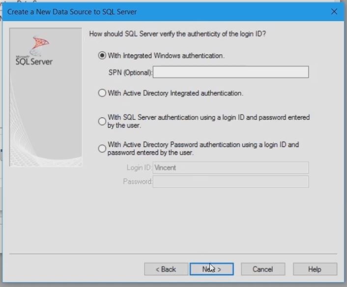 Select the ODBC driver from the list that appears. In this case: the ODBC Driver 13 for SQL server.