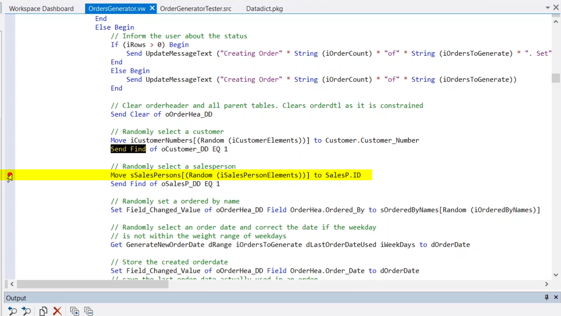 For this demonstration, code in the oOrdersGeneratorBPO in the OnProcess method will be used.