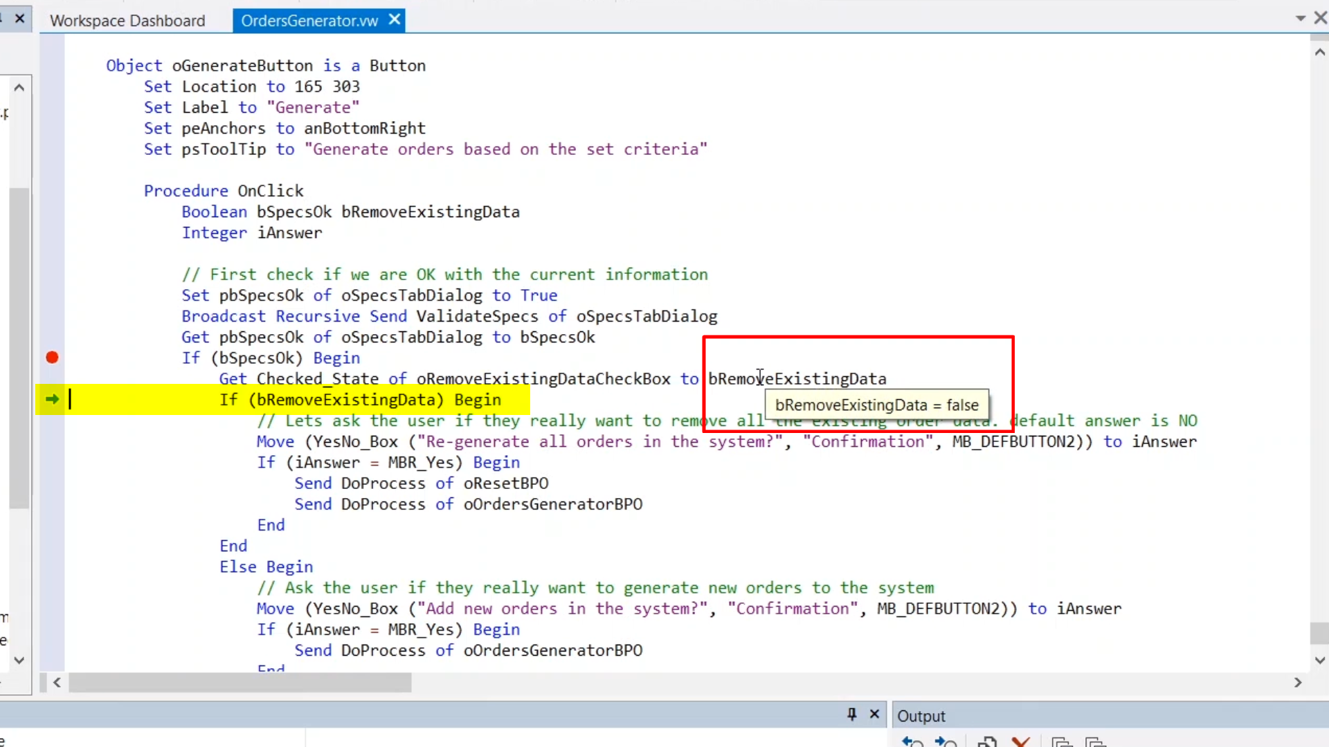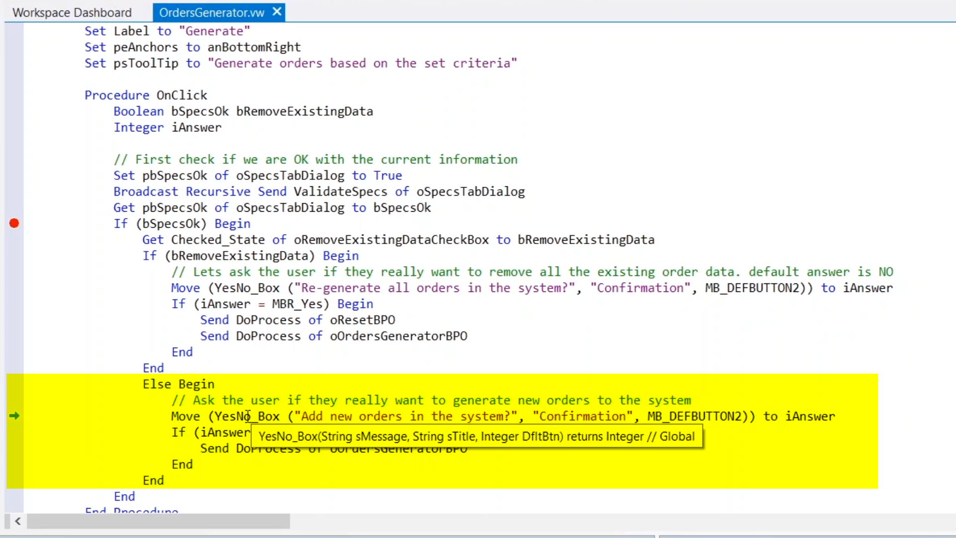 - Stepping over that line to execute the If statement to the next, which calls the DoProcess method of the oOrdersGeneratorBPO object