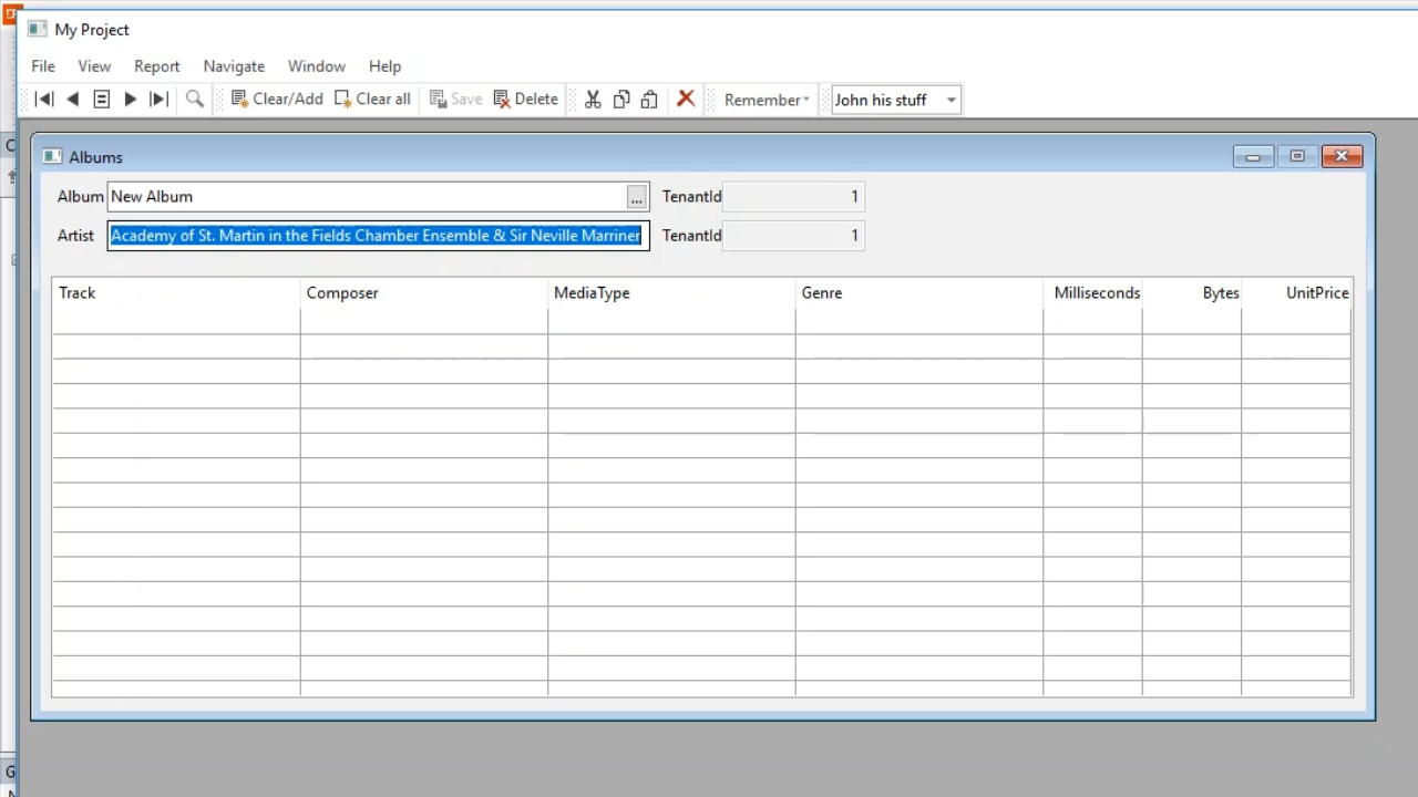When a new album and artist is entered into the ‘Albums’ view, the integer corresponding to the selected tenant is automatically applied.