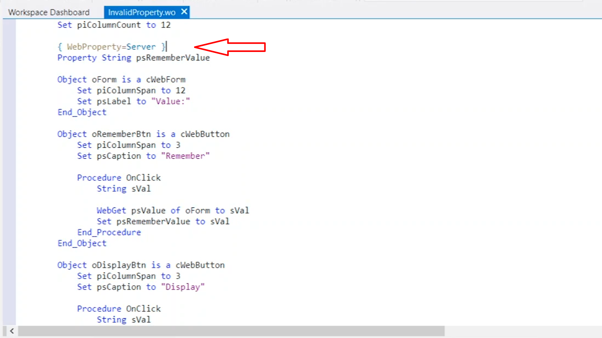 - Add the metatag, “WebProperty” and set it to be a server web property