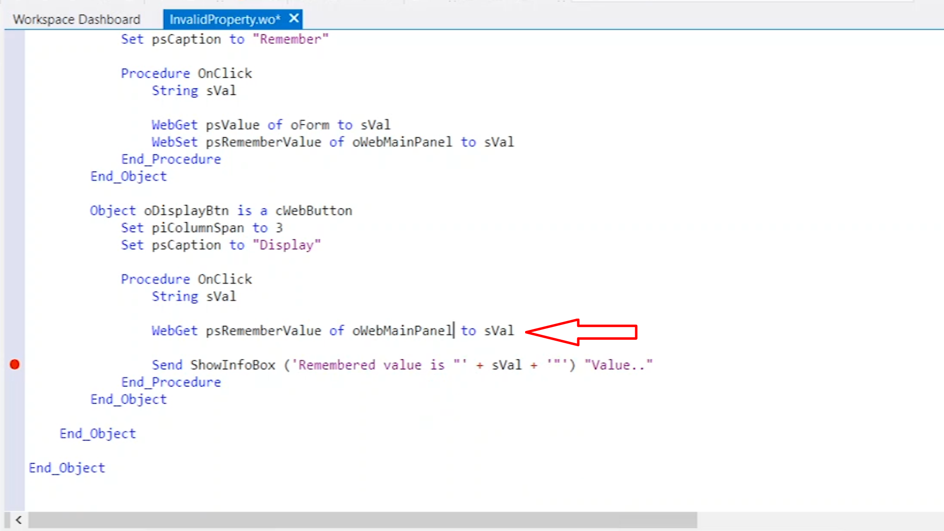 - WebGet psRememberValue of oWebMainPanel to sVal