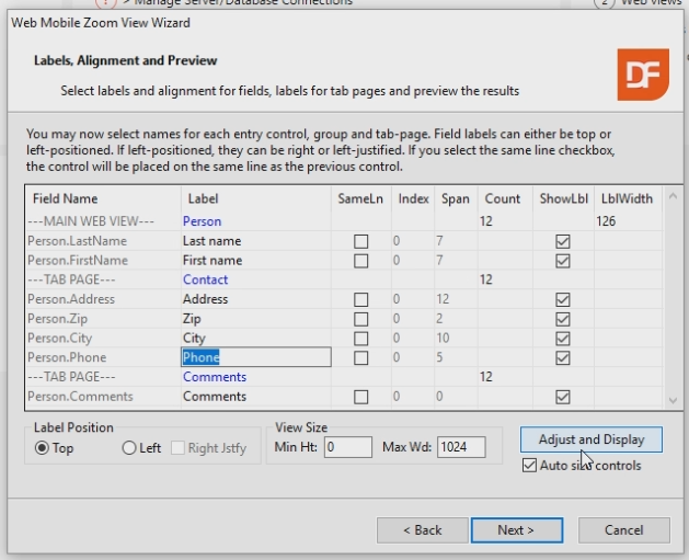 If you want to see what the Wizard is going to generate, you can click the "Adjust and Display" button.