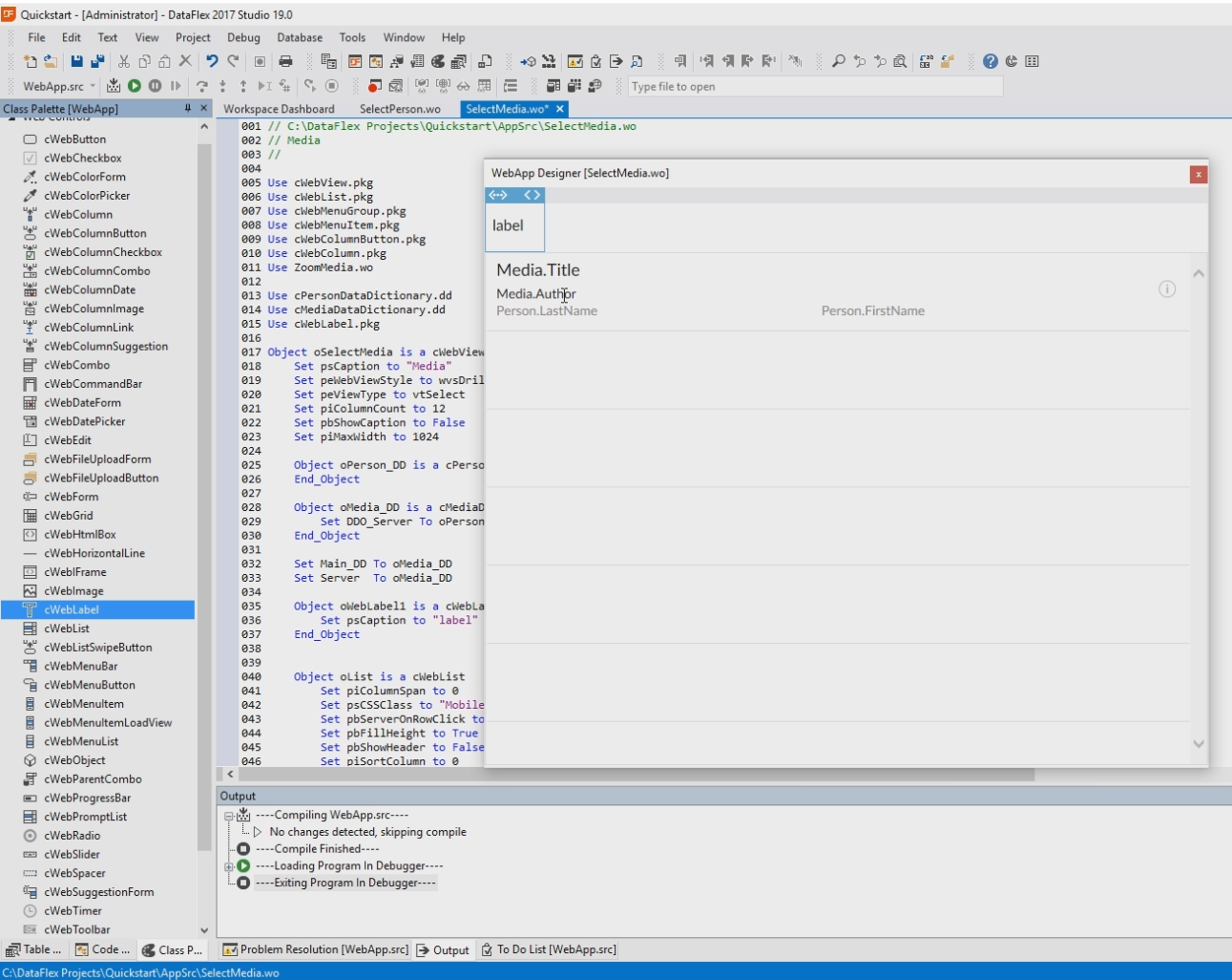 - Drag the cWebLabel from the Class Palette into the Designer.