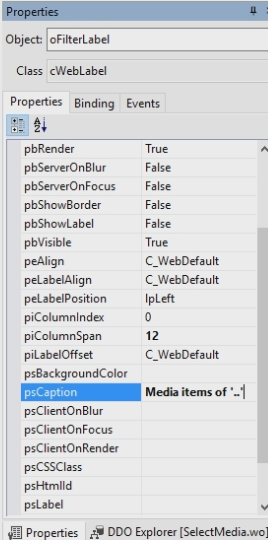 - Change the psCaption to Media items of ‘…’ We will make those dots dynamic later on.