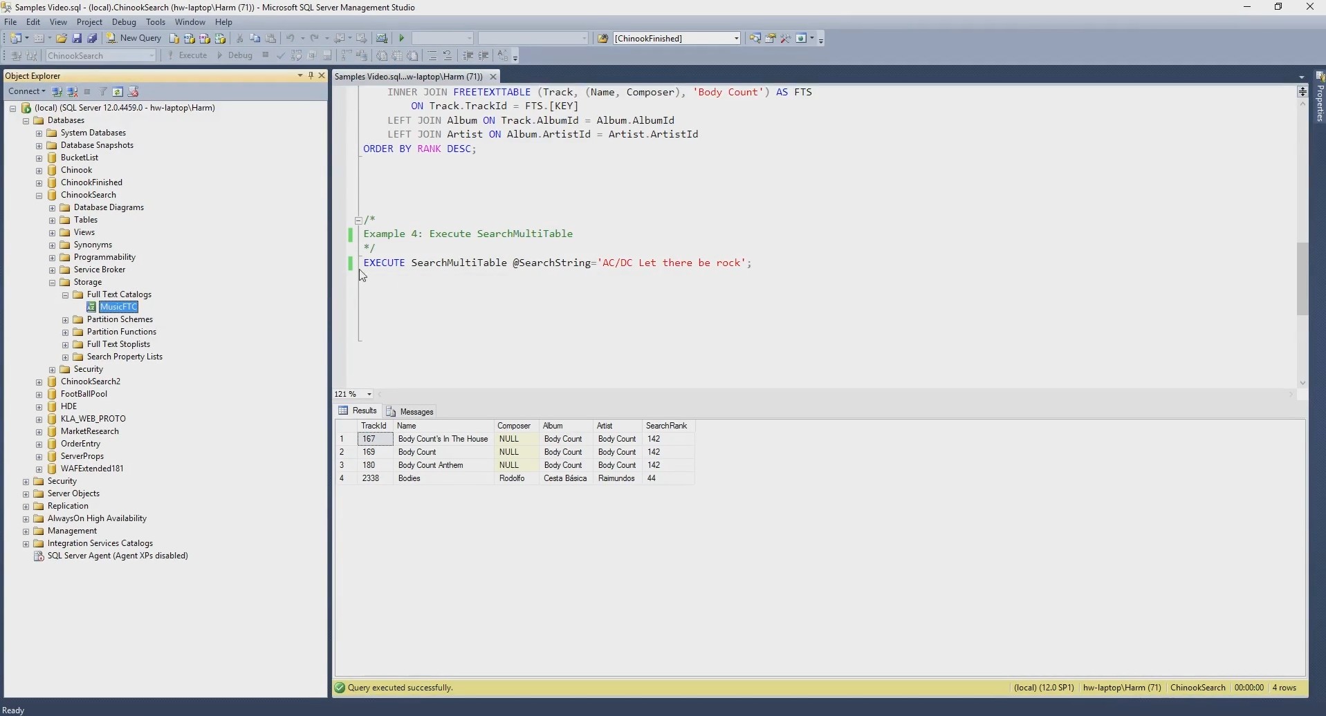 - In this course you have learned how to use embedded SQL. You’ve learned about full text search index and stored procedures. These are some great tools to build search functions for your own applications. For more courses like this one visit: learning.dataaccess.eu
