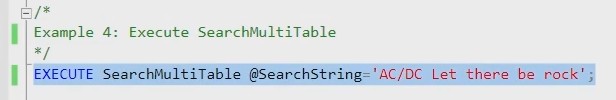 - Executing this is a lot simpler. In SQL you type ‘EXECUTE <the name of the stored procedure> @SearchString’ that executes it and provides the big table.