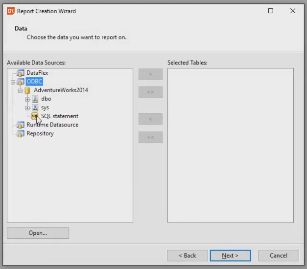 SQL statements are geared toward report designers who wish to have full control over how DataFlex Reports retrieves records from an ODBC data source and for developers who seek to optimize their reports performance. SQL statements allow report designers to include custom SQL in their report.