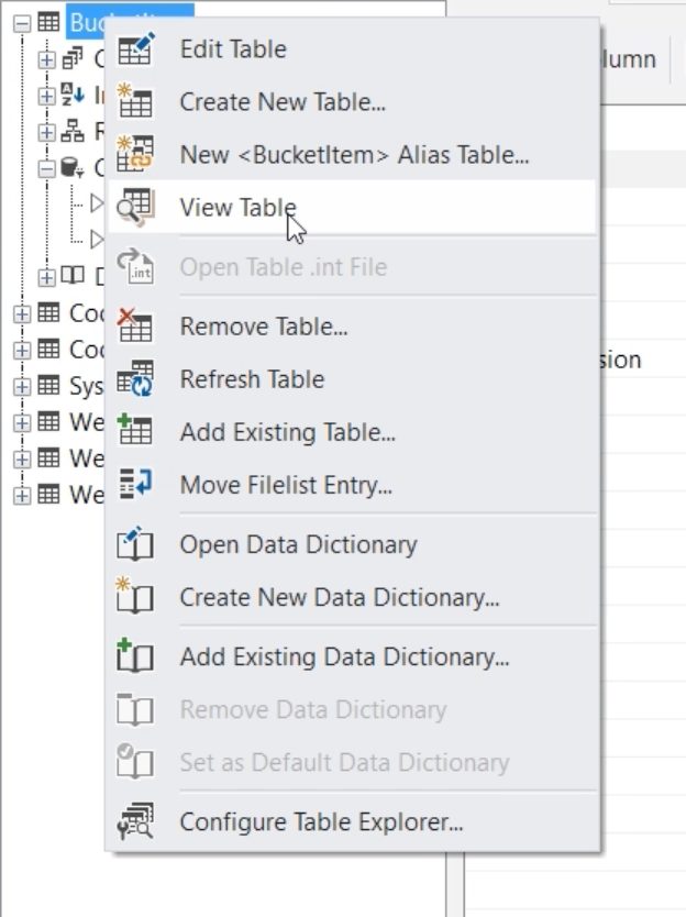 - Right click on the table and press ‘View Table’, this shows the data in the table.