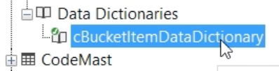 - Expanding the data dictionary section in the table explorer shows a single data dictionary.