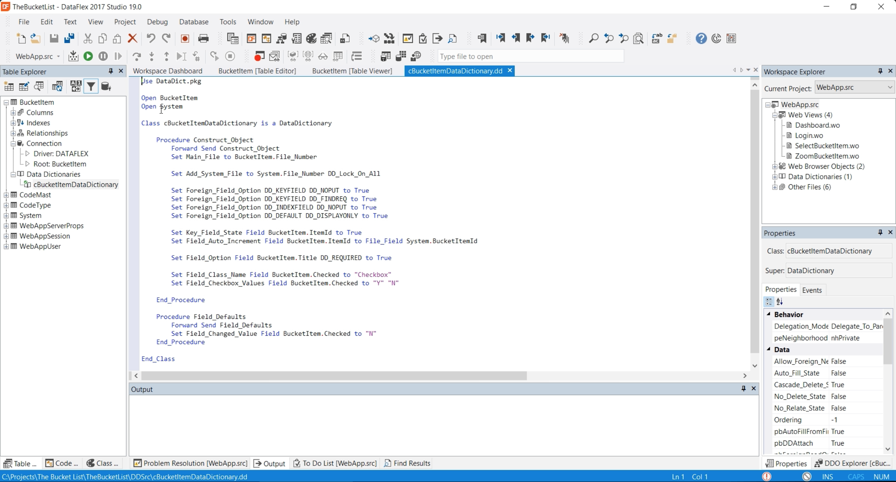 - From the data dictionary editor go into the source mode by pressing F7, to see the source code of this data dictionary. This is the source code for this data dictionary. Within DataFlex a data dictionary is simply a class within the language.