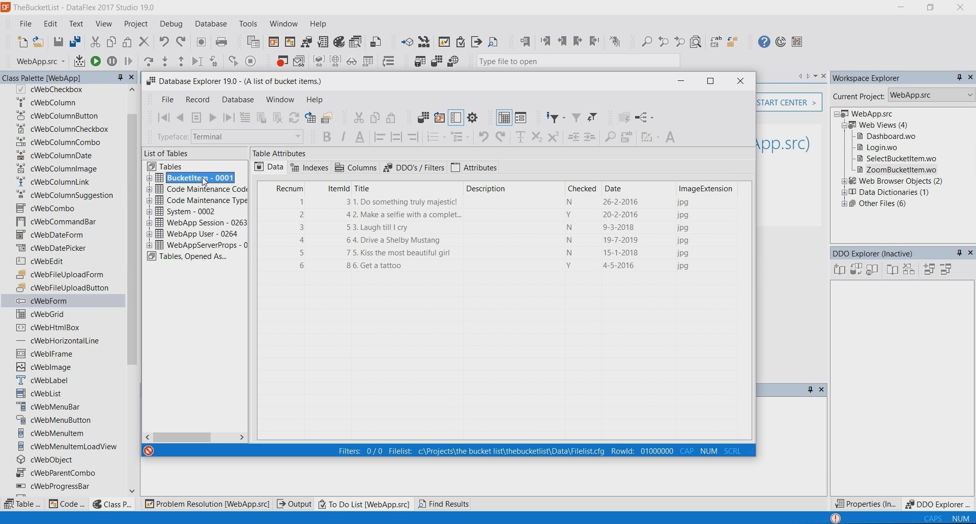 In this case you can click on the ‘BucketItem – 0001’ table, because it has automatically opened the workspace you can see the data of the bucket list items in this application.