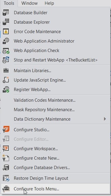It’s also possible to customize the tools menu by selecting ‘Confige Tools Menu’.