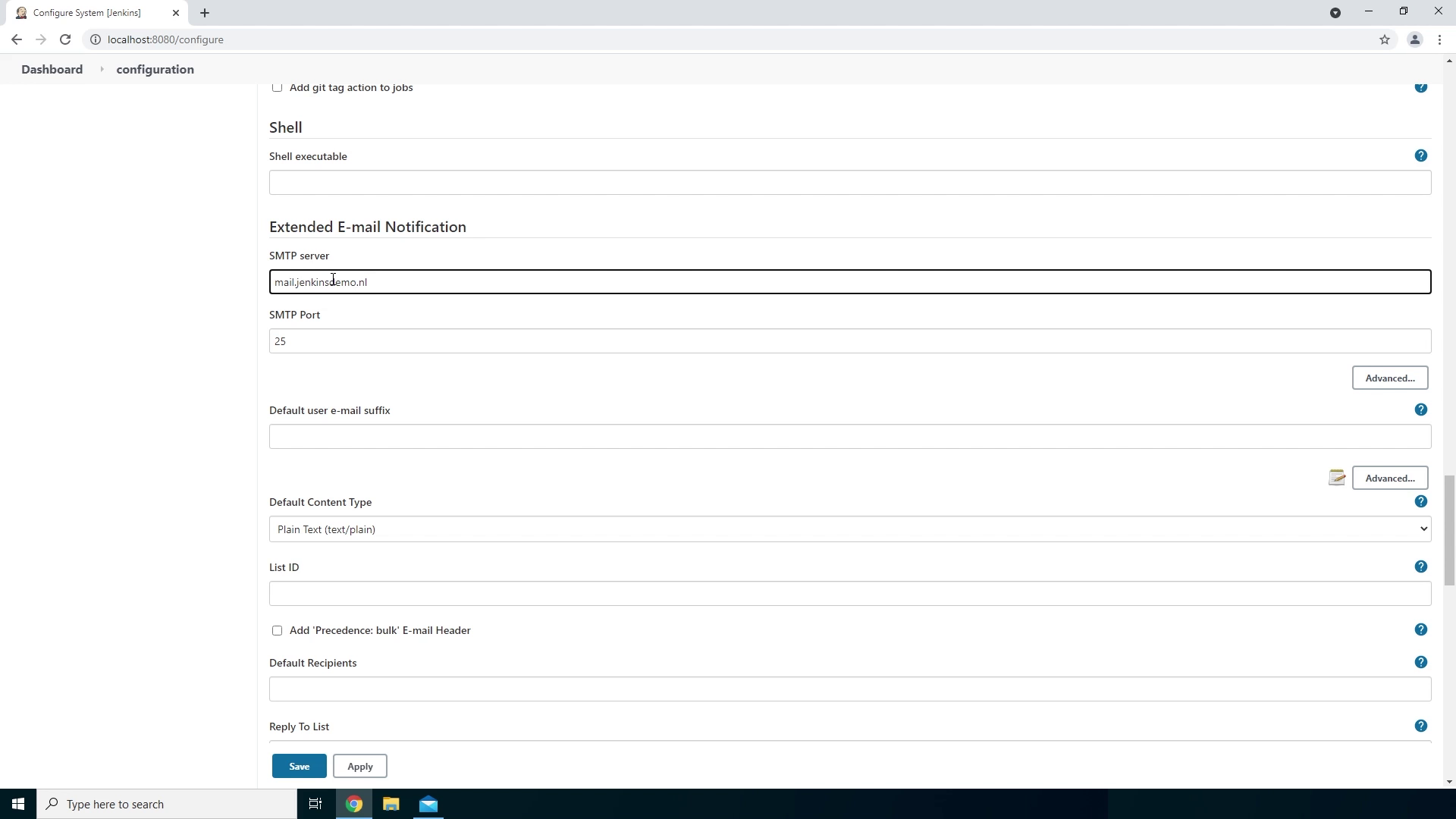- So let’s fill in mail.jenkinsdemo.nl.
