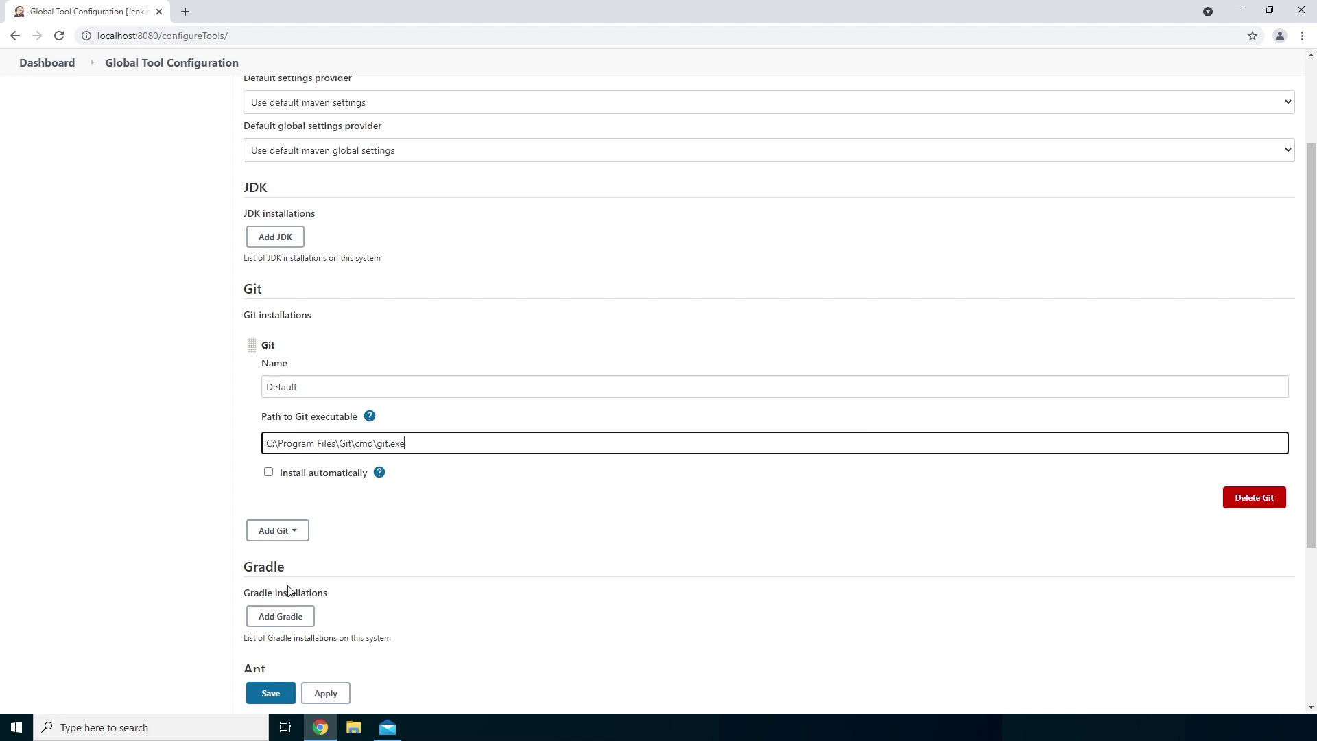 - I have already installed Git earlier on so let’s fill in the location of the Git executable and then click on Save.