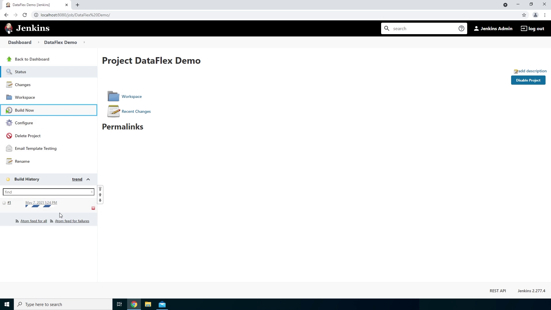 We have successfully installed Jenkins on our Windows 64bit system. We created a build project where we compiled a DataFlex workspace using the DataFlex Command Line Compiler and let it send us an email when a build failed and when a build succeeded.