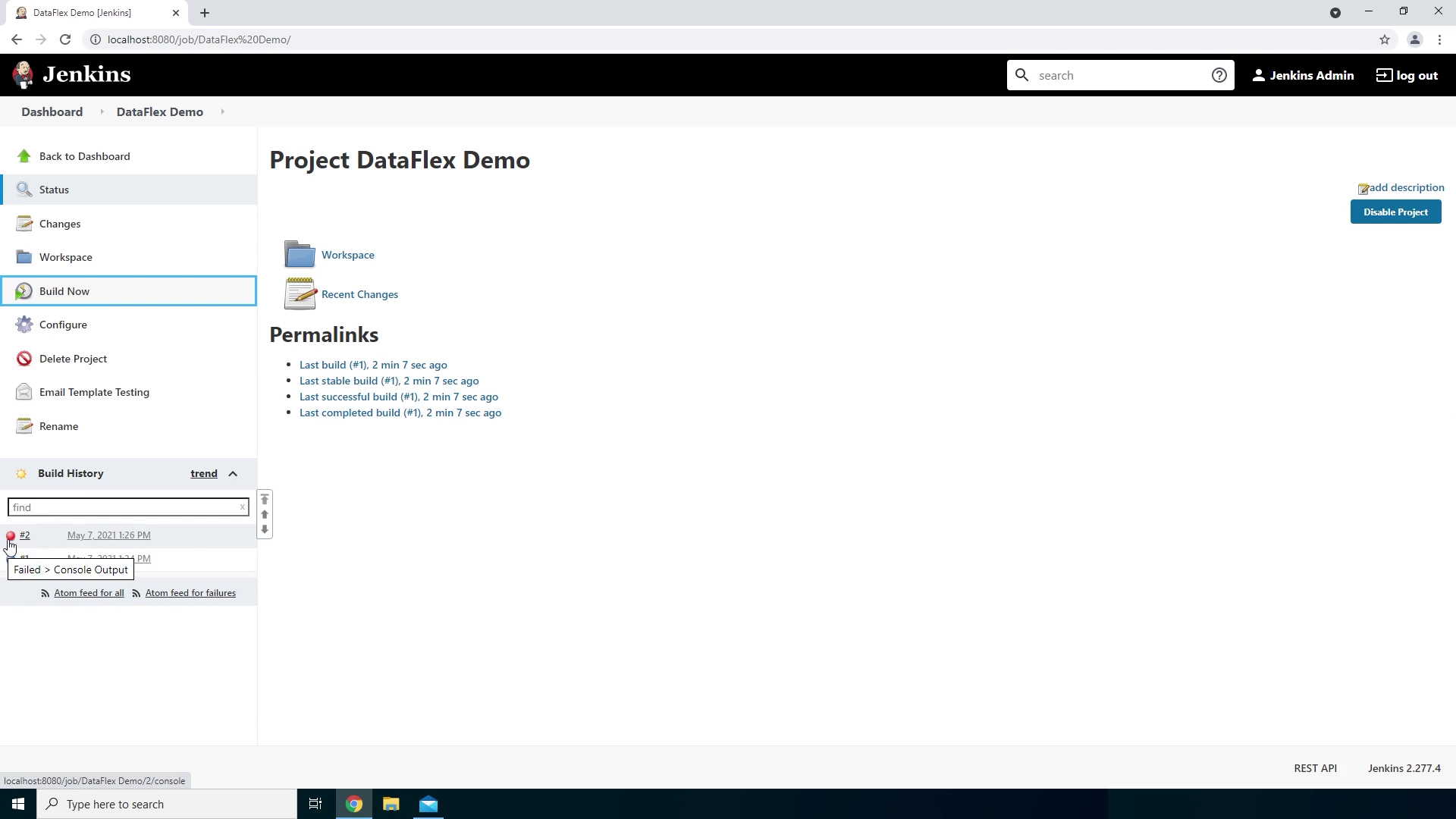 - Let’s look at the output by clicking on the build. And then click on console output.