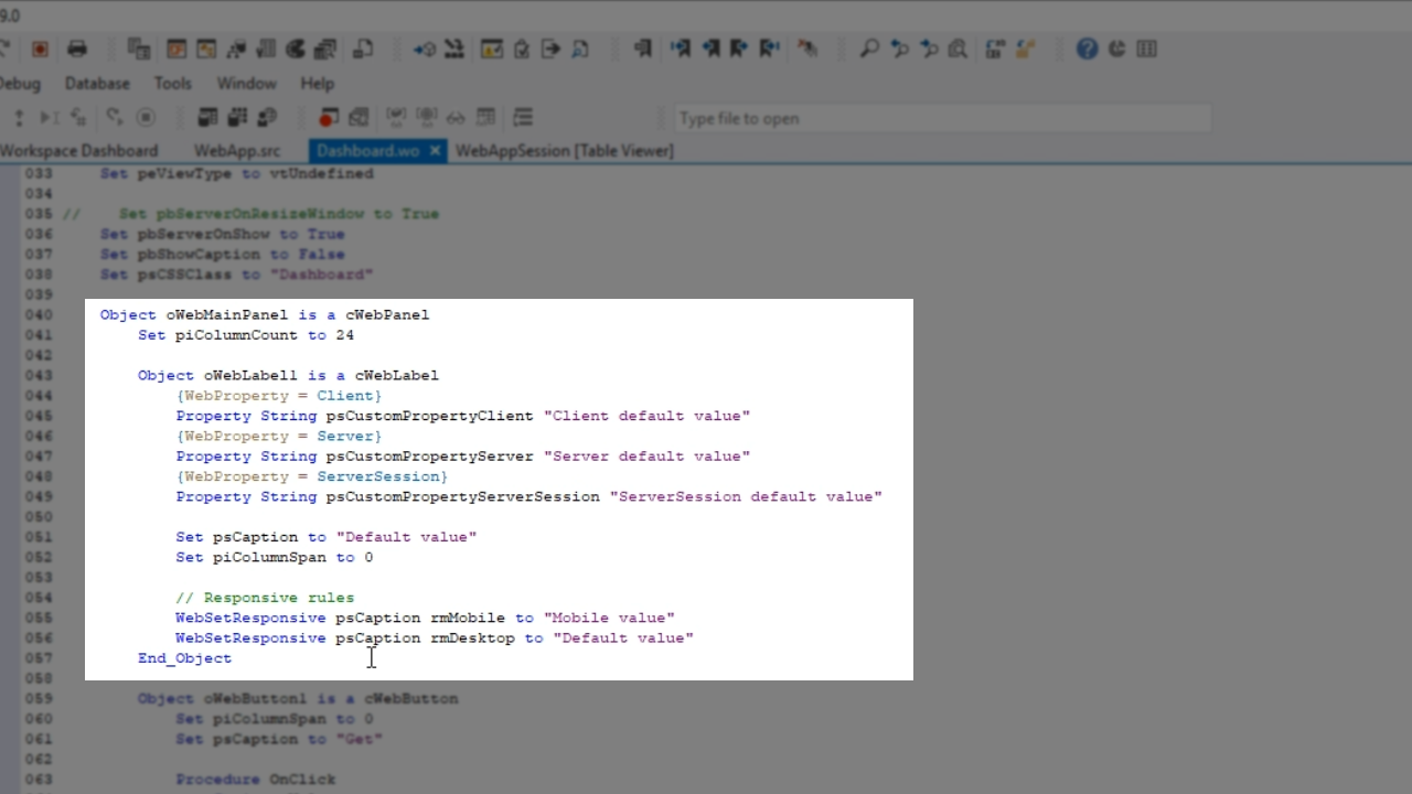 Web properties also adhere to responsive rules. The value can be changed based on the current window size. This is done using WebSetResponsive. Several modes can be chosen to do this, but the most common modes are rmDesktop, rmTablet and rmMobile.